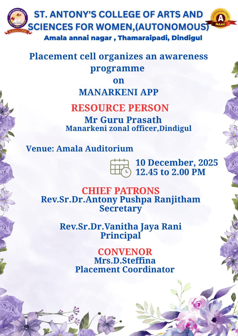 Placement Cell Organizes an awareness Programme on Manarkeni APP