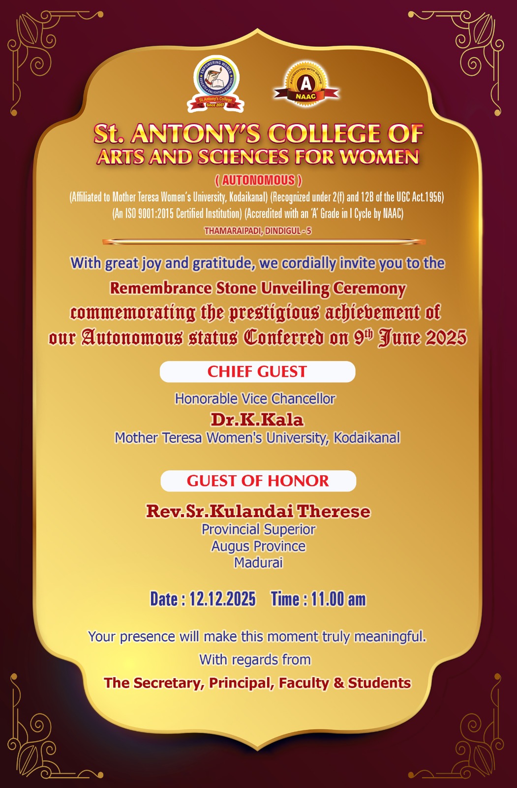 Remembrance stone unveiling ceremony commemorating the prestigious achievement of our Autonomous status conferred on 9th June 2025
